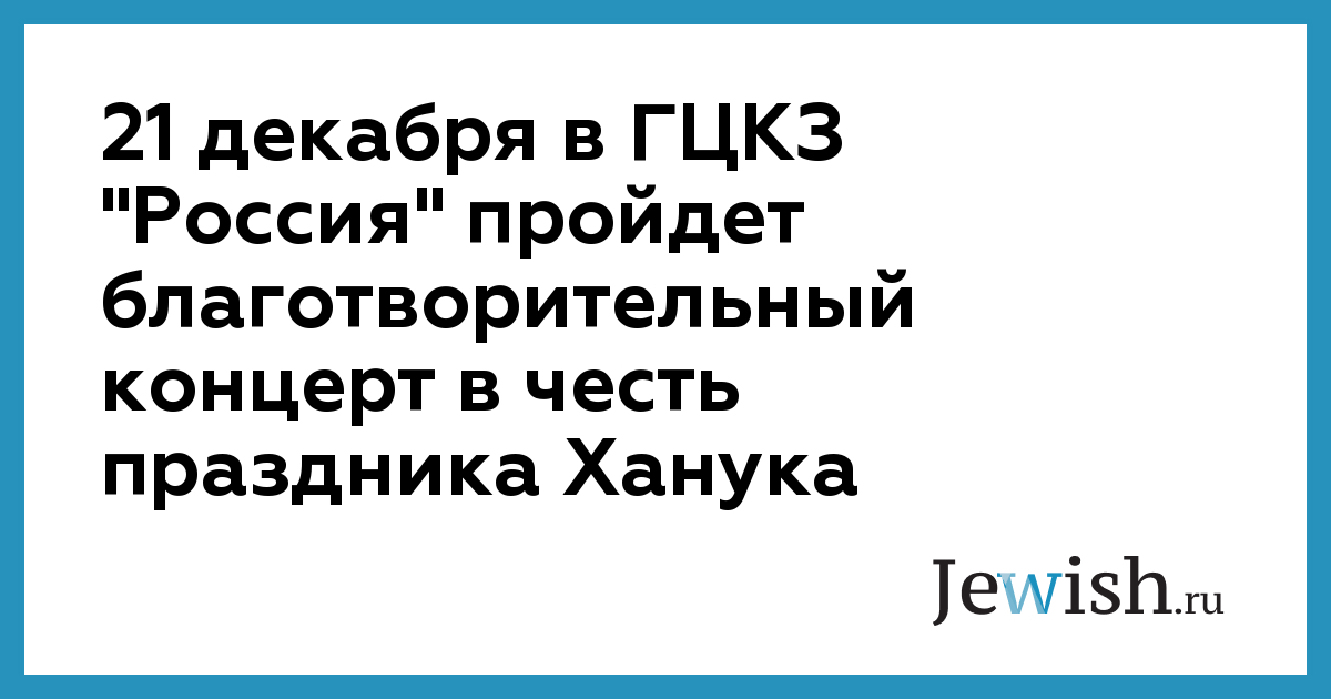 21 декабря в ГЦКЗ "Россия" пройдет благотворительный концерт в честь праздника Ханука
