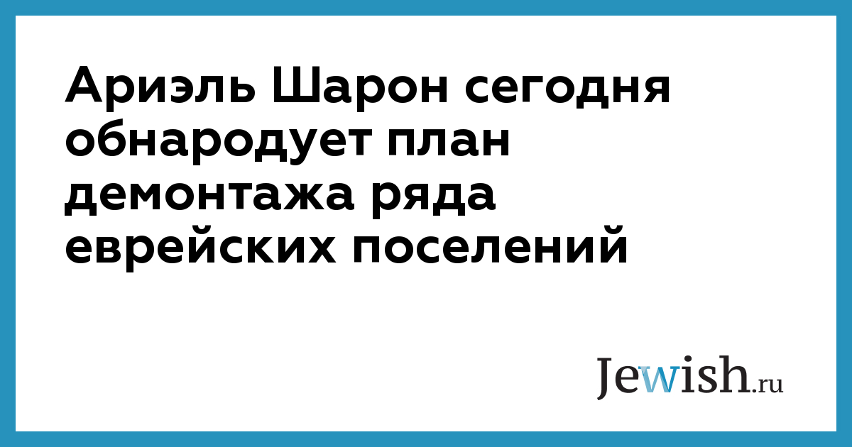 Ариэль Шарон сегодня обнародует план демонтажа ряда еврейских поселений