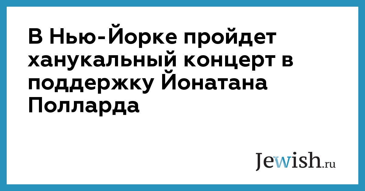 В Нью-Йорке пройдет ханукальный концерт в поддержку Йонатана Полларда