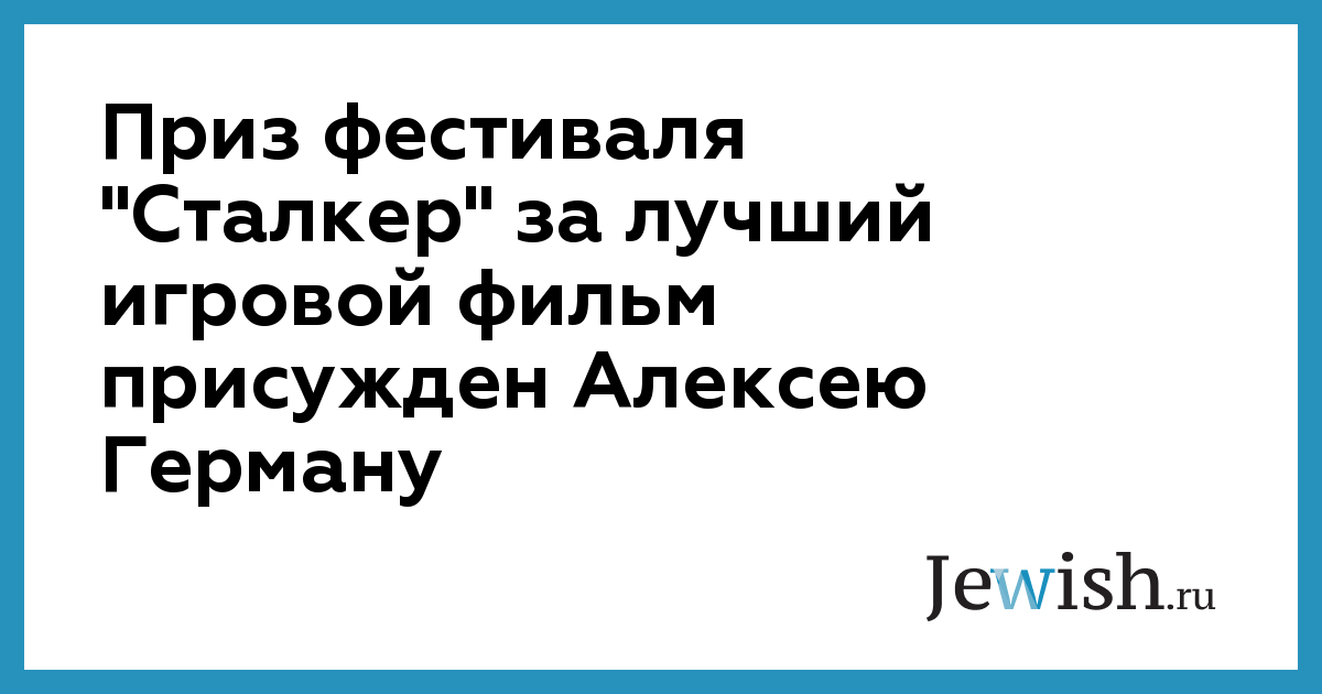 Приз фестиваля "Сталкер" за лучший игровой фильм присужден Алексею Герману