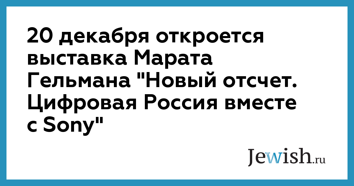 20 декабря откроется выставка Марата Гельмана "Новый отсчет. Цифровая Россия вместе с Sony"