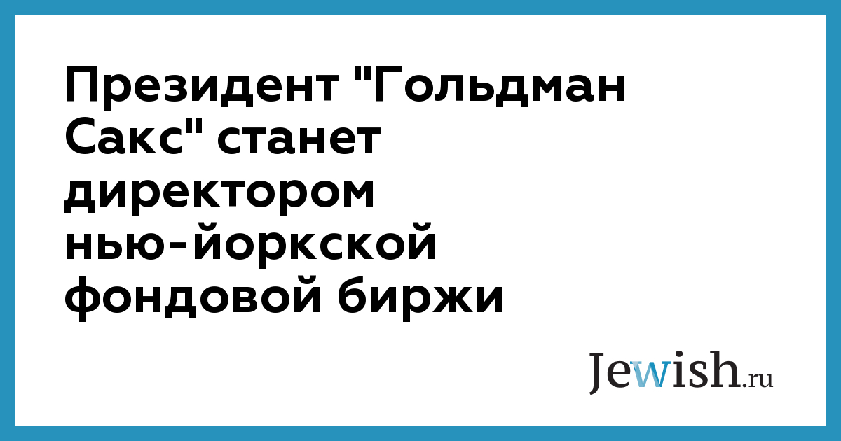 Президент "Гольдман Сакс" станет директором нью-йоркской фондовой биржи