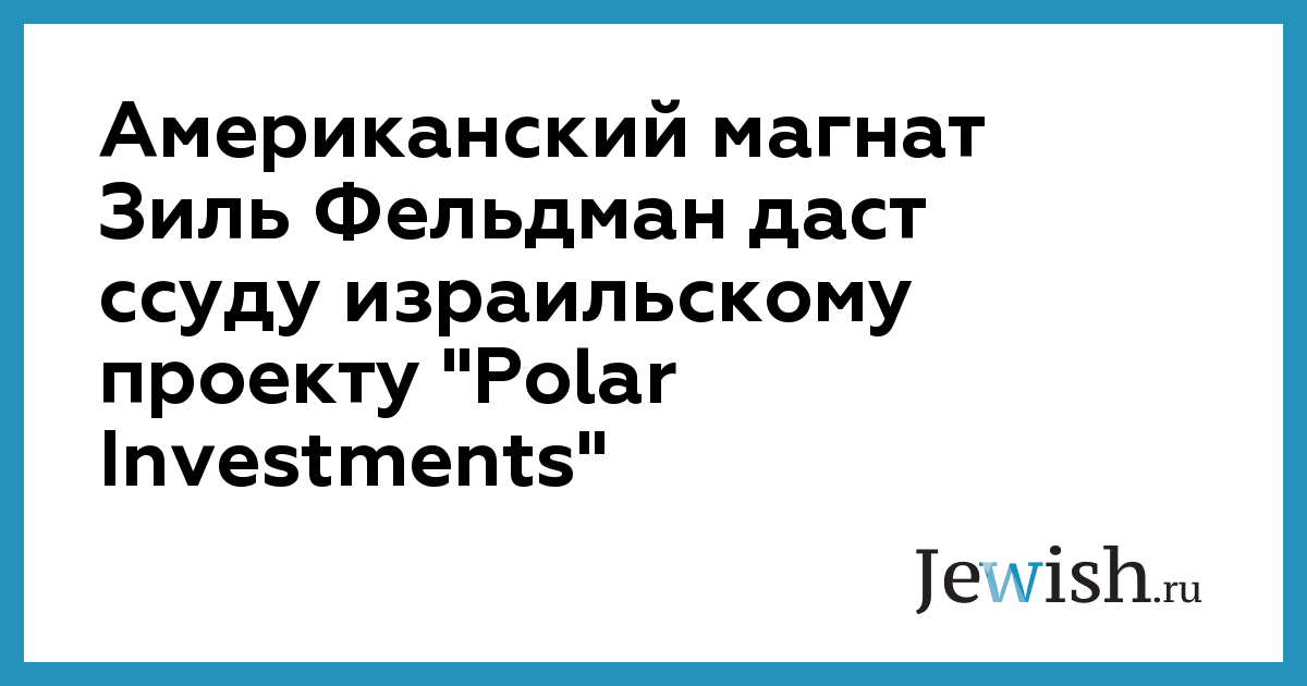 Американский магнат Зиль Фельдман даст ссуду израильскому проекту "Polar Investments"