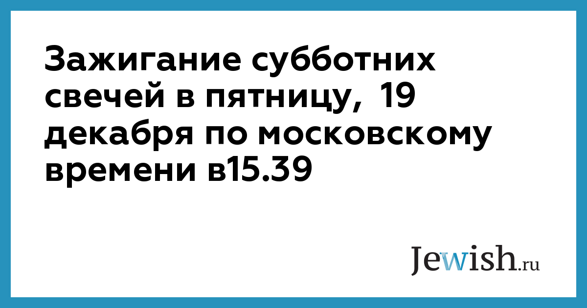 Зажигание субботних свечей в пятницу, 19 декабря по московскому времени в15.39