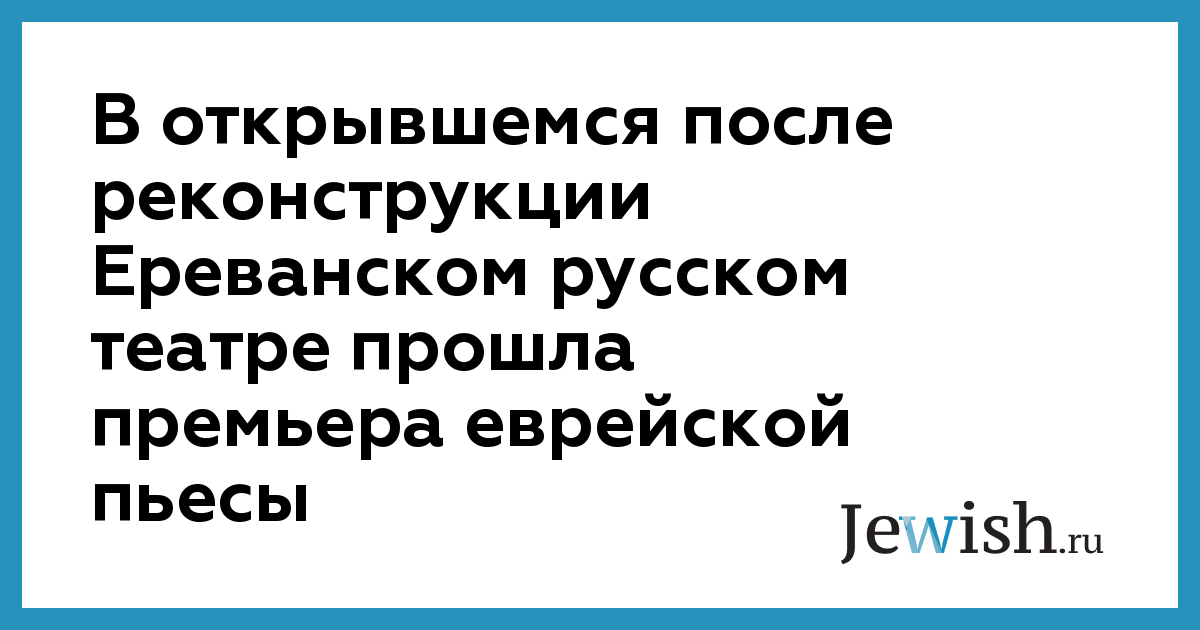 В открывшемся после реконструкции Ереванском русском театре прошла премьера еврейской пьесы