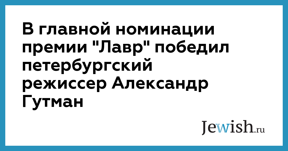 В главной номинации премии "Лавр" победил петербургский режиссер Александр Гутман