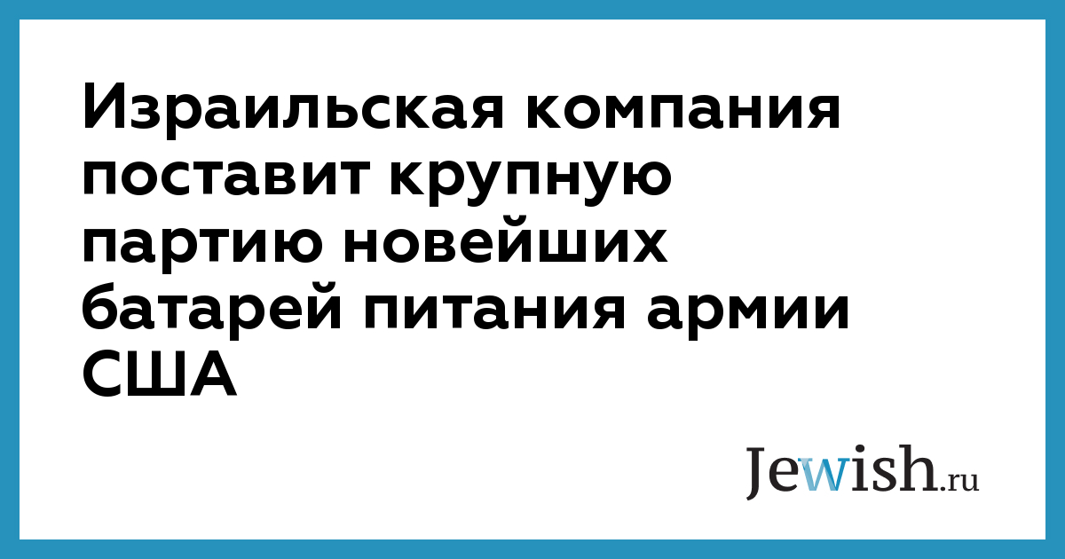 Израильская компания поставит крупную партию новейших батарей питания армии США
