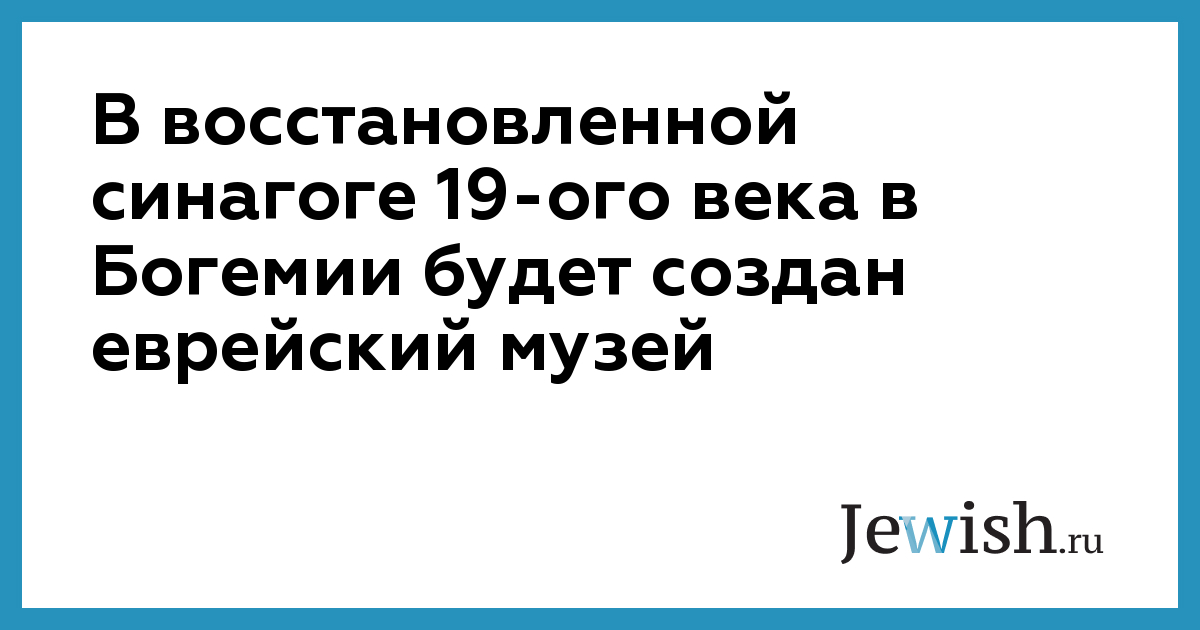 В восстановленной синагоге 19-ого века в Богемии будет создан еврейский музей