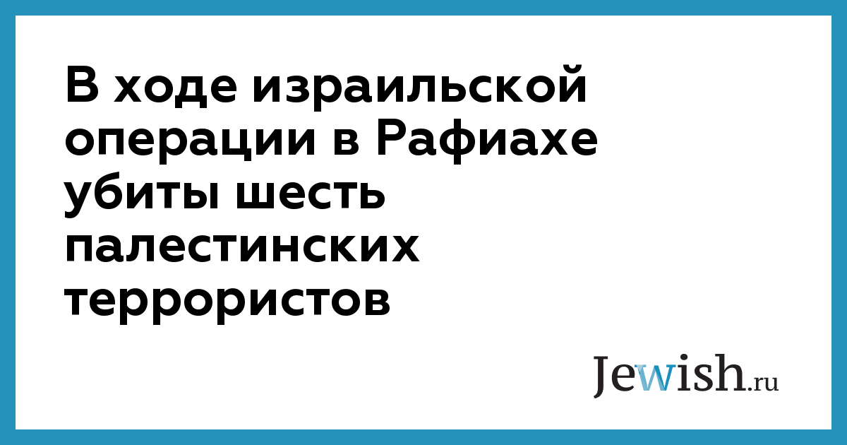 В ходе израильской операции в Рафиахе убиты шесть палестинских террористов