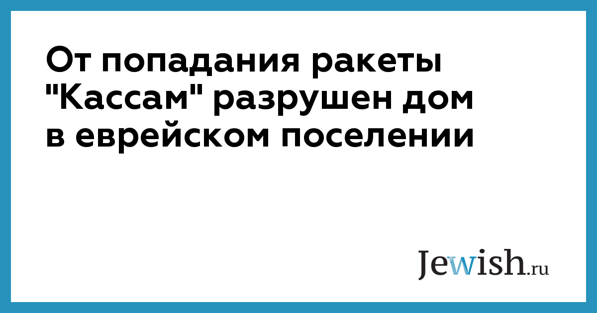 От попадания ракеты "Кассам" разрушен дом в еврейском поселении
