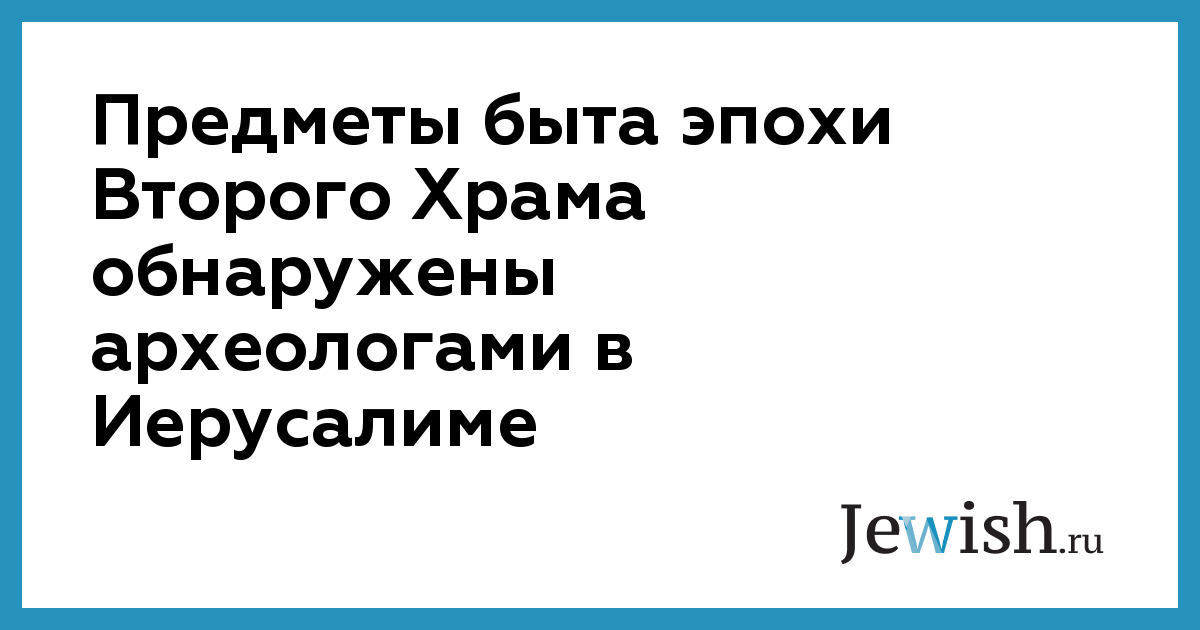 Предметы быта эпохи Второго Храма обнаружены археологами в Иерусалиме