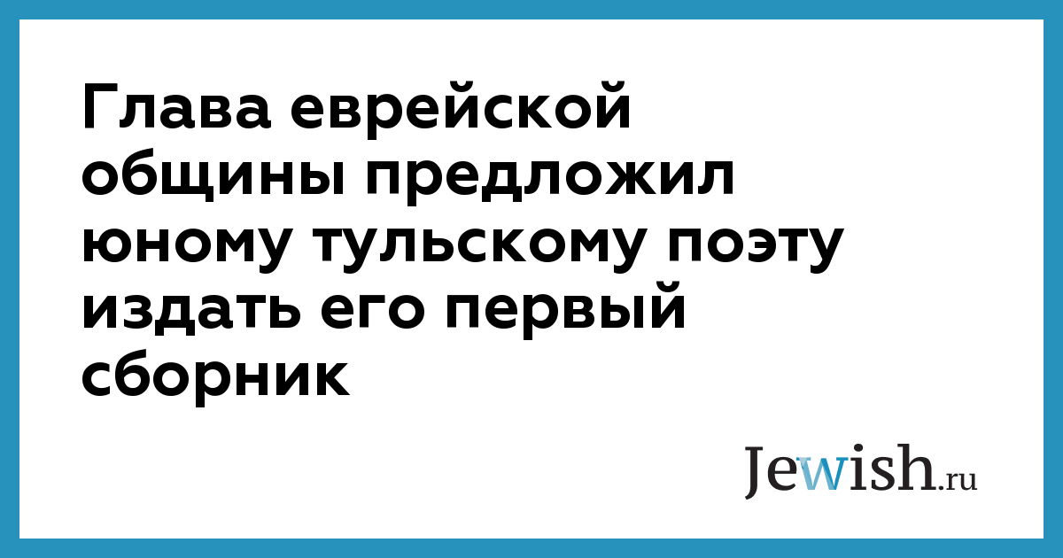 Глава еврейской общины предложил юному тульскому поэту издать его первый сборник