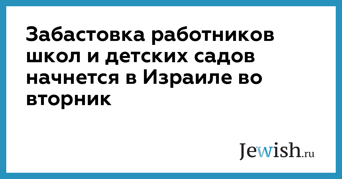 Забастовка работников школ и детских садов начнется в Израиле во вторник