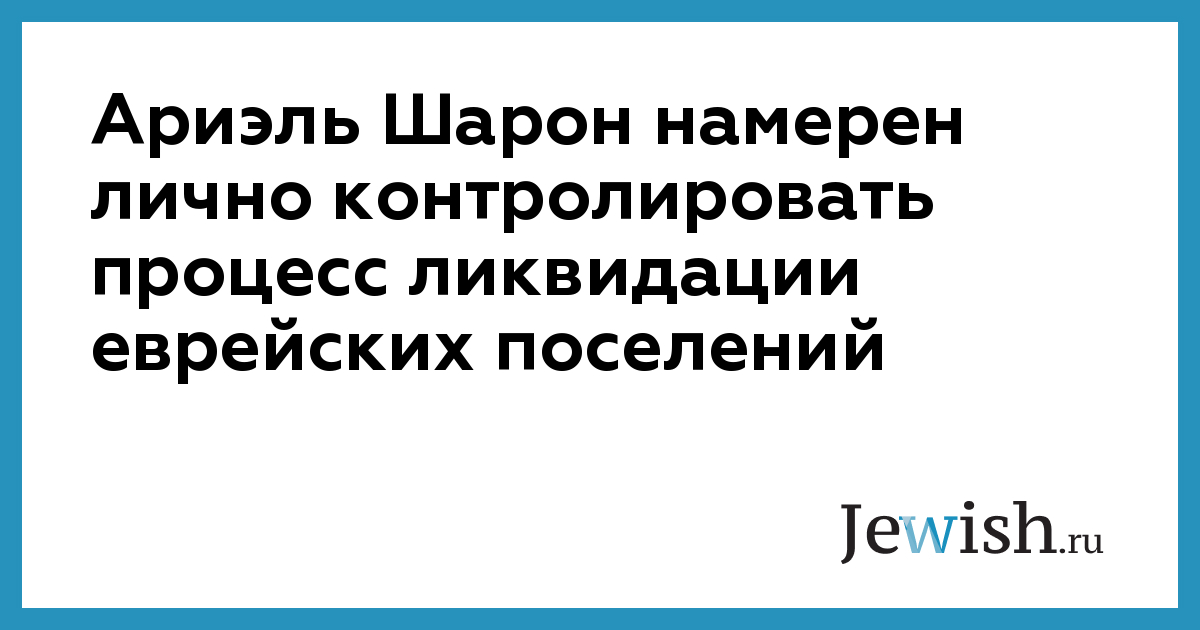 Ариэль Шарон намерен лично контролировать процесс ликвидации еврейских поселений