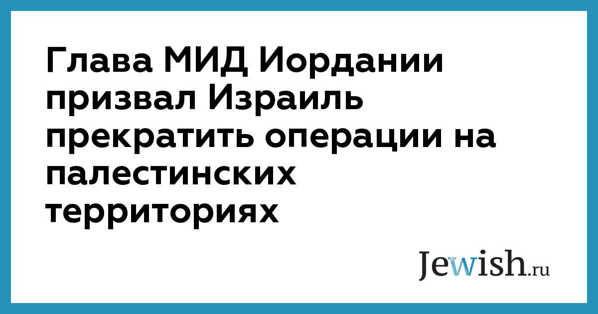 Глава МИД Иордании призвал Израиль прекратить операции на палестинских территориях