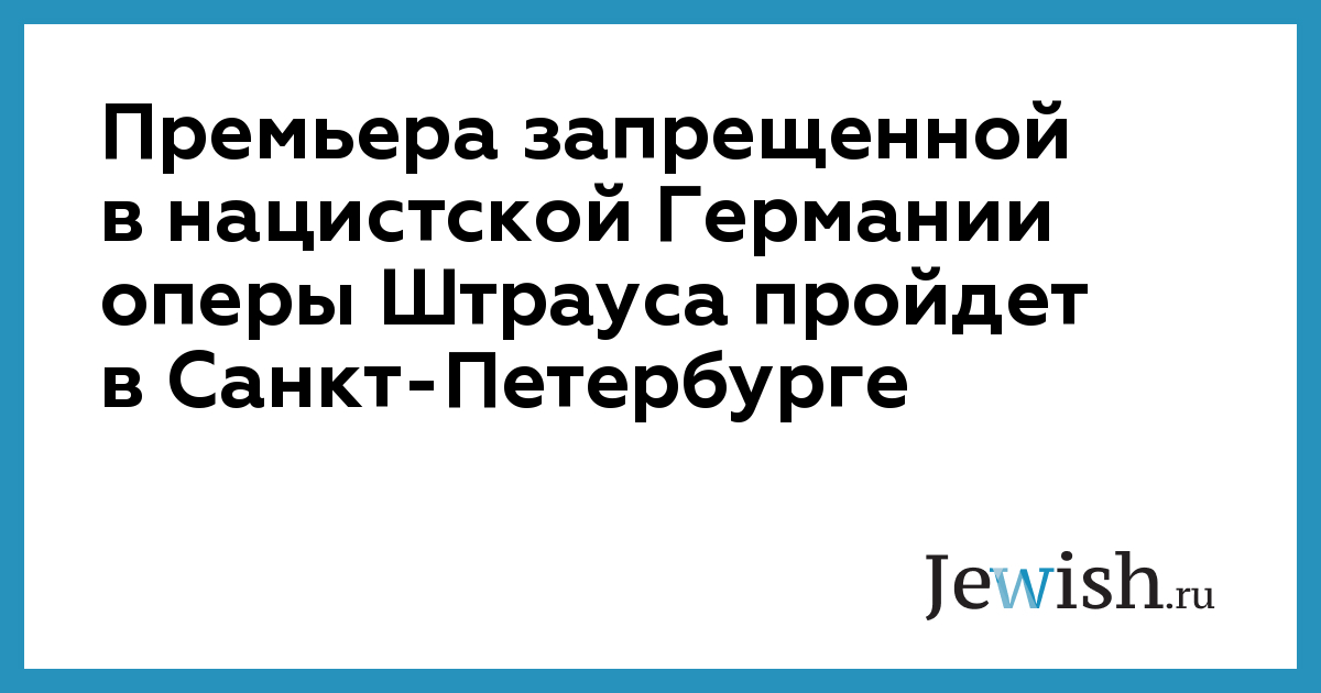 Премьера запрещенной в нацистской Германии оперы Штрауса пройдет в Санкт-Петербурге
