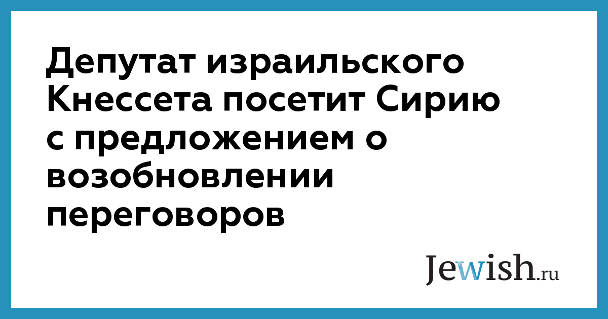 Депутат израильского Кнессета посетит Сирию с предложением о возобновлении переговоров