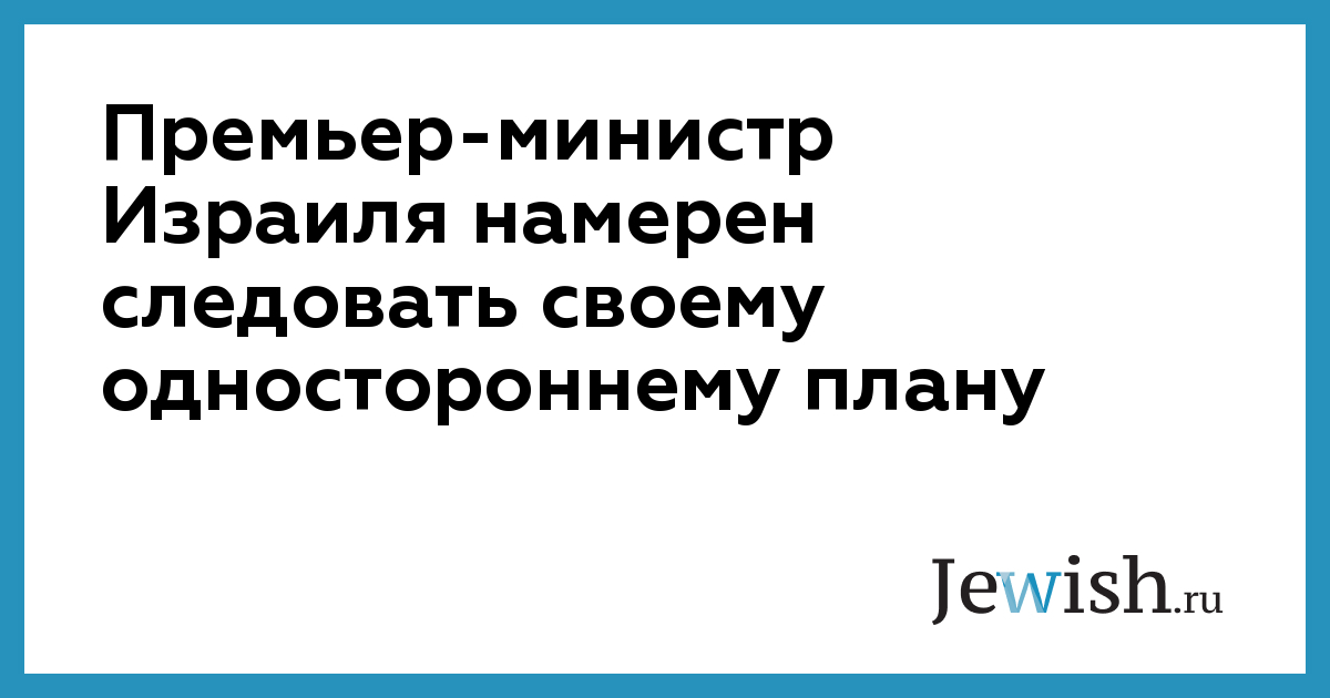 Премьер-министр Израиля намерен следовать своему одностороннему плану