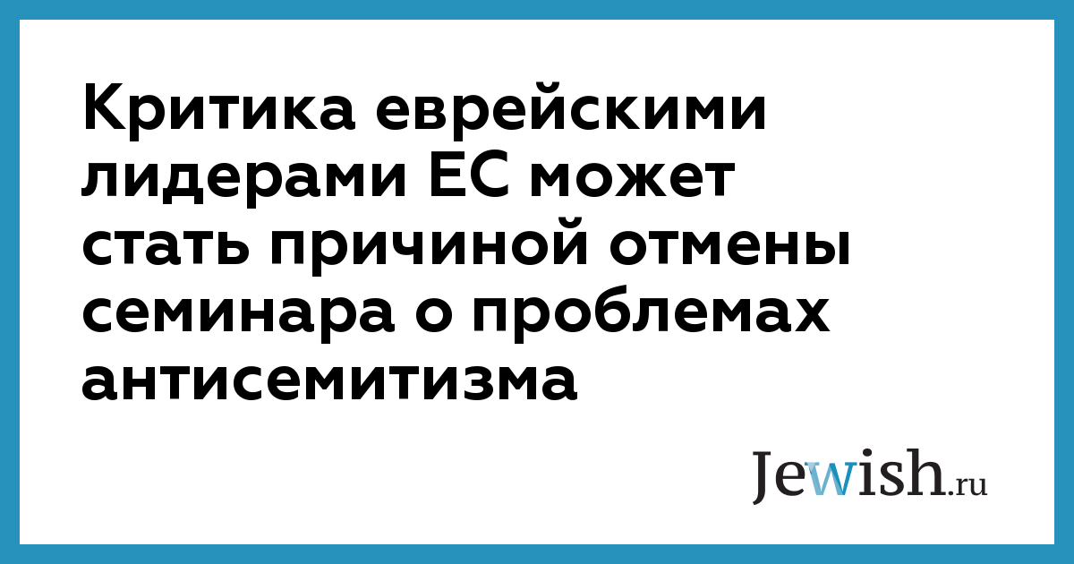 Критика еврейскими лидерами ЕС может стать причиной отмены семинара о проблемах антисемитизма