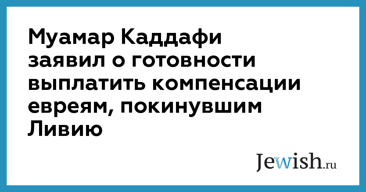 Муамар Каддафи заявил о готовности выплатить компенсации евреям, покинувшим Ливию
