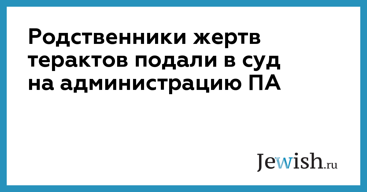 В иске говорится, что террористические организации действуют как субподрядчики палестинской администрации, чья политика поощряет убийства евреев.