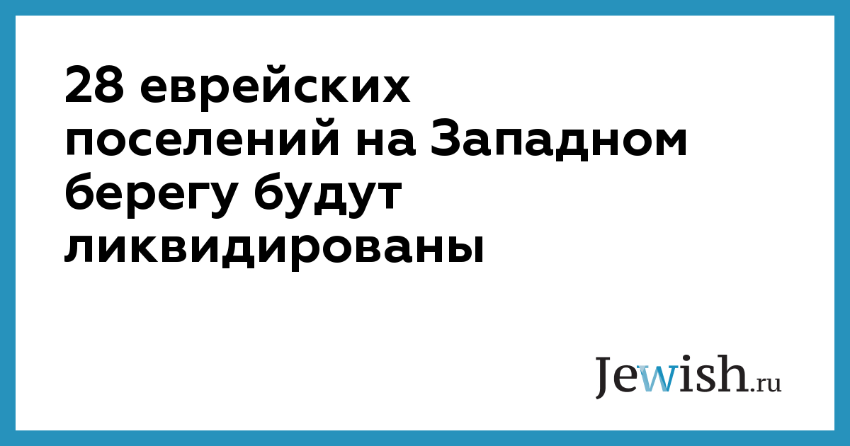 28 еврейских поселений на Западном берегу будут ликвидированы