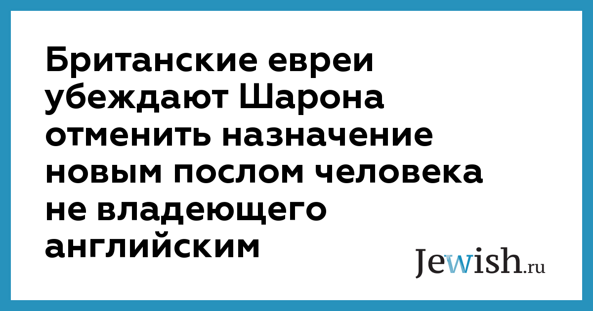 Британские евреи убеждают Шарона отменить назначение новым послом человека не владеющего английским