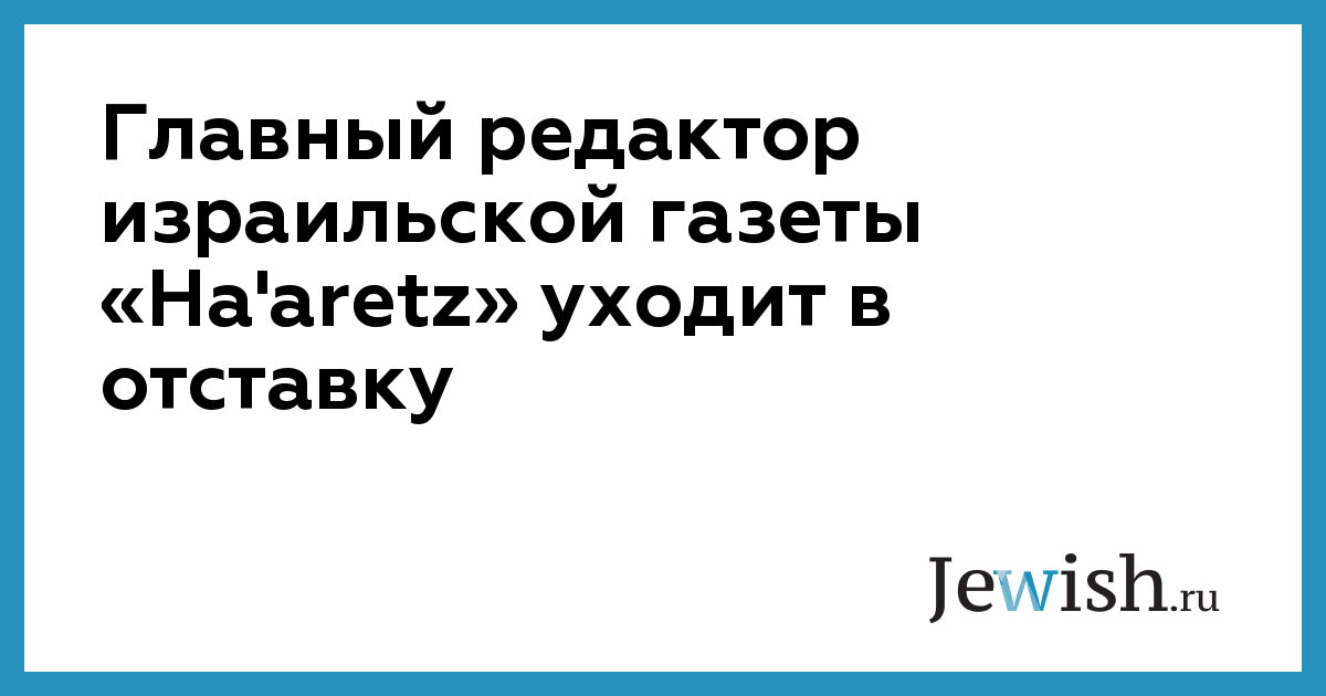 Главный редактор израильской газеты «Ha'aretz» уходит в отставку