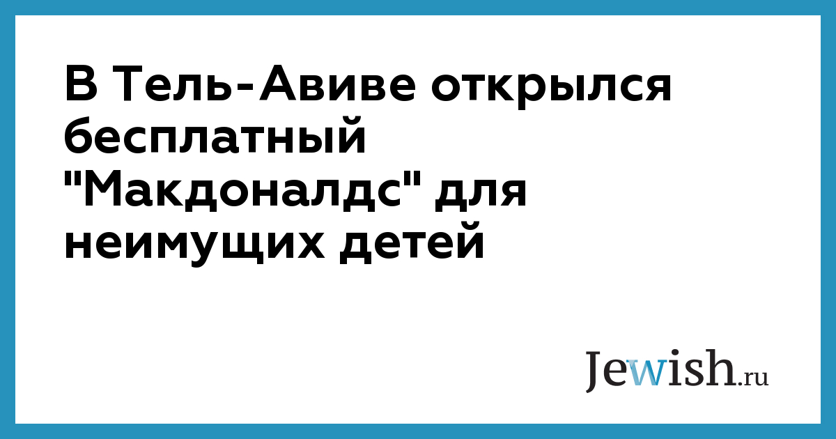 В Тель-Авиве открылся бесплатный "Макдоналдс" для неимущих детей