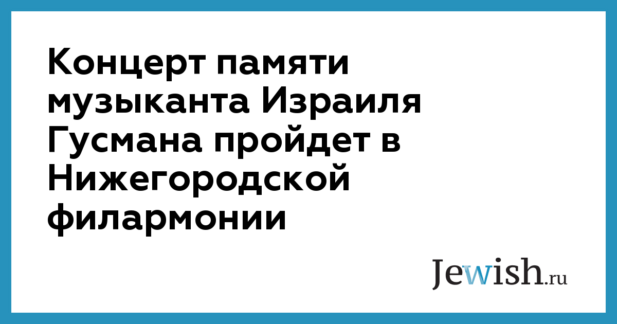 Концерт памяти музыканта Израиля Гусмана пройдет в Нижегородской филармонии