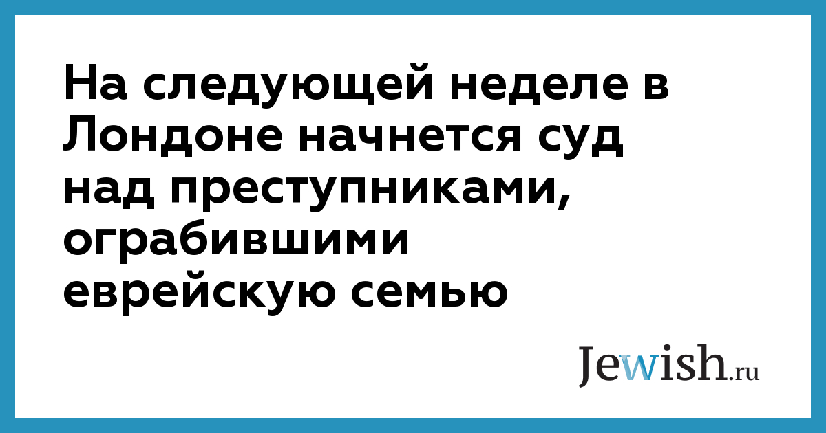 На следующей неделе в Лондоне начнется суд над преступниками, ограбившими еврейскую семью