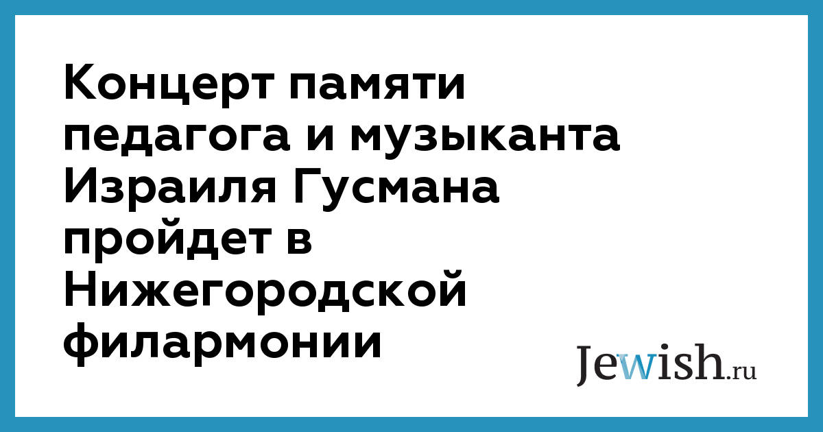 Концерт памяти педагога и музыканта Израиля Гусмана пройдет в Нижегородской филармонии