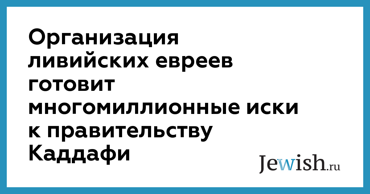 Организация ливийских евреев при содействии правительства Израиля готовит нужную документацию, после того как на прошлой неделе Каддафи заявил о готовности компенсировать еврейским беженцам из Ливии стоимость недвижимости и земельных участков, общая сумма которых по предварительным подсчетам составляет не менее 100 миллионов долларов.