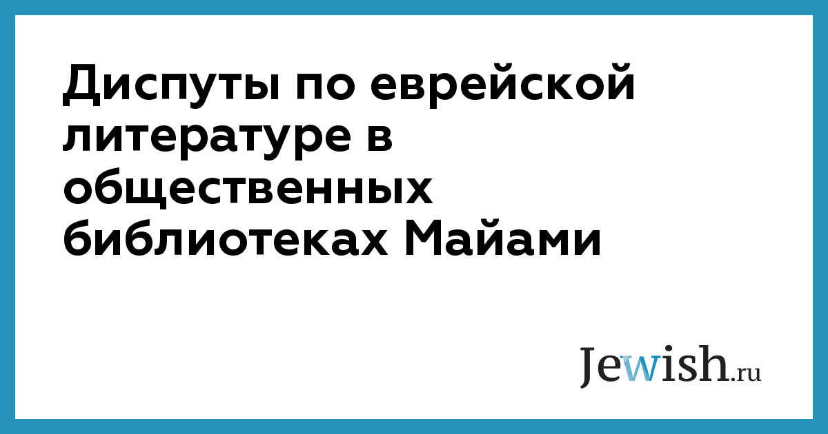 Диспуты по еврейской литературе в общественных библиотеках Майами