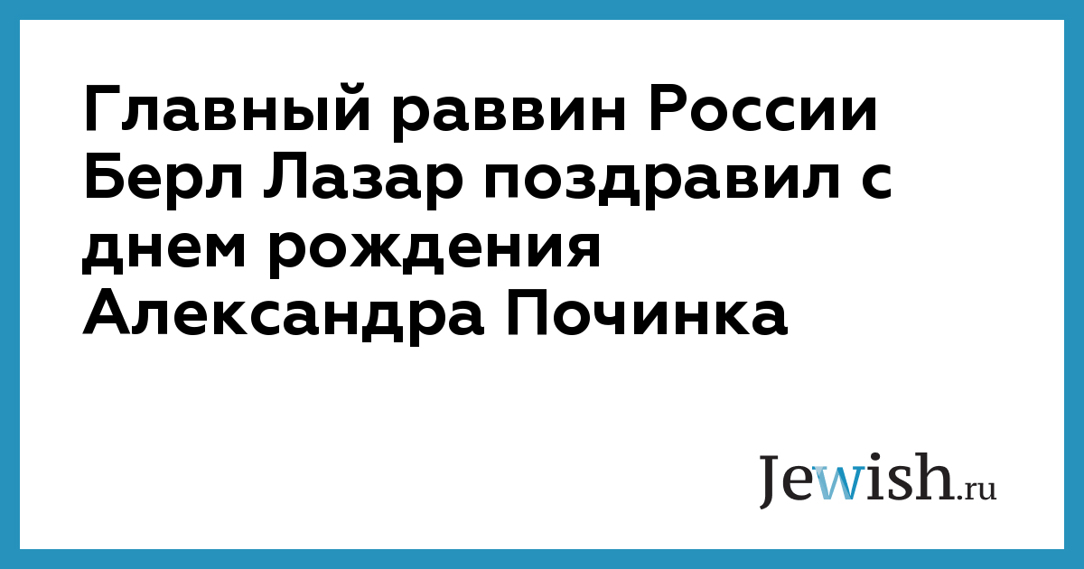 Главный раввин России Берл Лазар поздравил с днем рождения Александра Починка