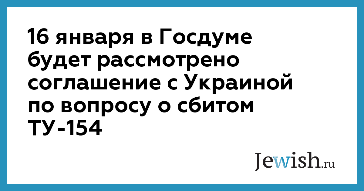 16 января в Госдуме будет рассмотрено соглашение с Украиной по вопросу о сбитом ТУ-154