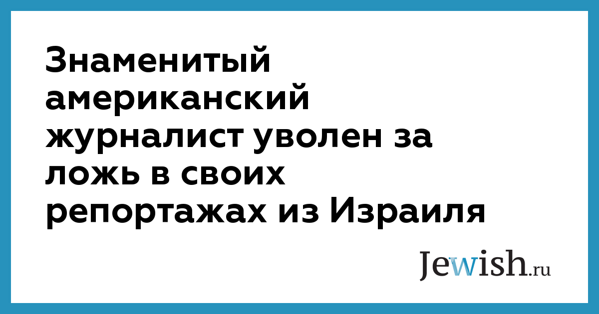 Знаменитый американский журналист уволен за ложь в своих репортажах из Израиля