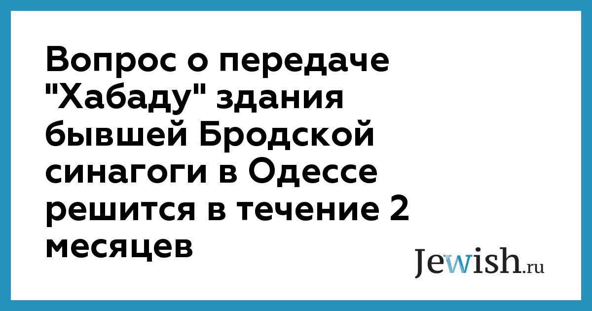 Вопрос о передаче "Хабаду" здания бывшей Бродской синагоги в Одессе решится в течение 2 месяцев