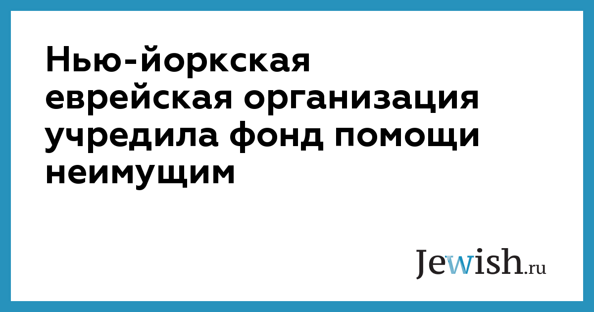 Нью-йоркская еврейская организация учредила фонд помощи неимущим