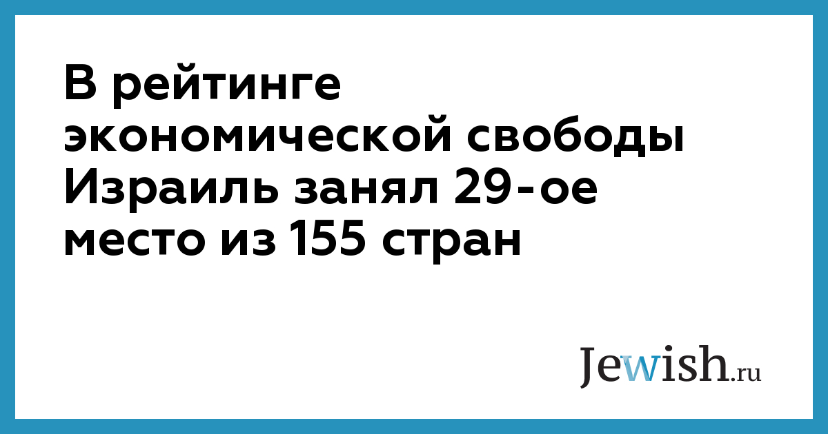 В рейтинге экономической свободы Израиль занял 29-ое место из 155 стран