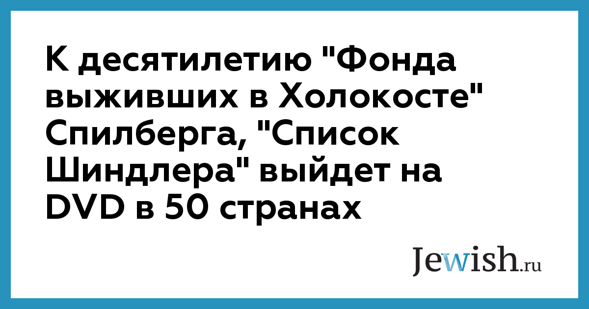 К десятилетию "Фонда выживших в Холокосте" Спилберга, "Список Шиндлера" выйдет на DVD в 50 странах