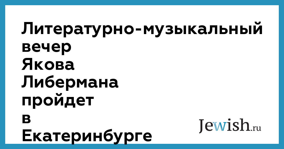 Литературно-музыкальный вечер Якова Либермана пройдет в Екатеринбурге