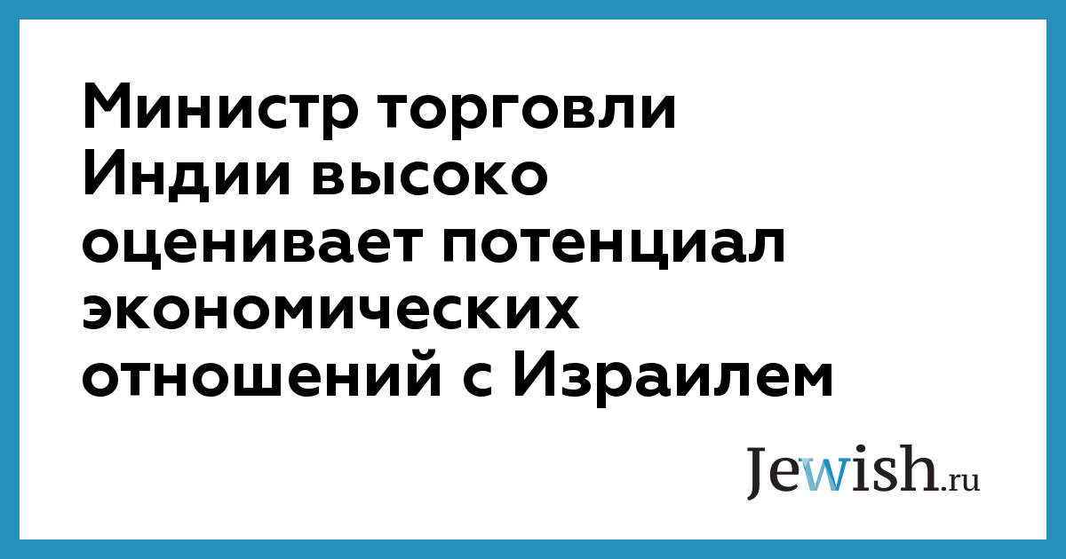 Министр торговли Индии высоко оценивает потенциал экономических отношений с Израилем