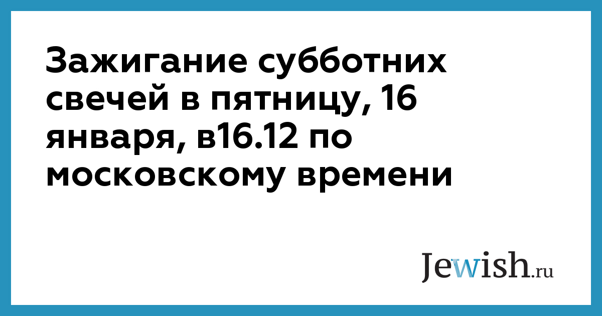 Зажигание субботних свечей в пятницу, 16 января, в16.12 по московскому времени