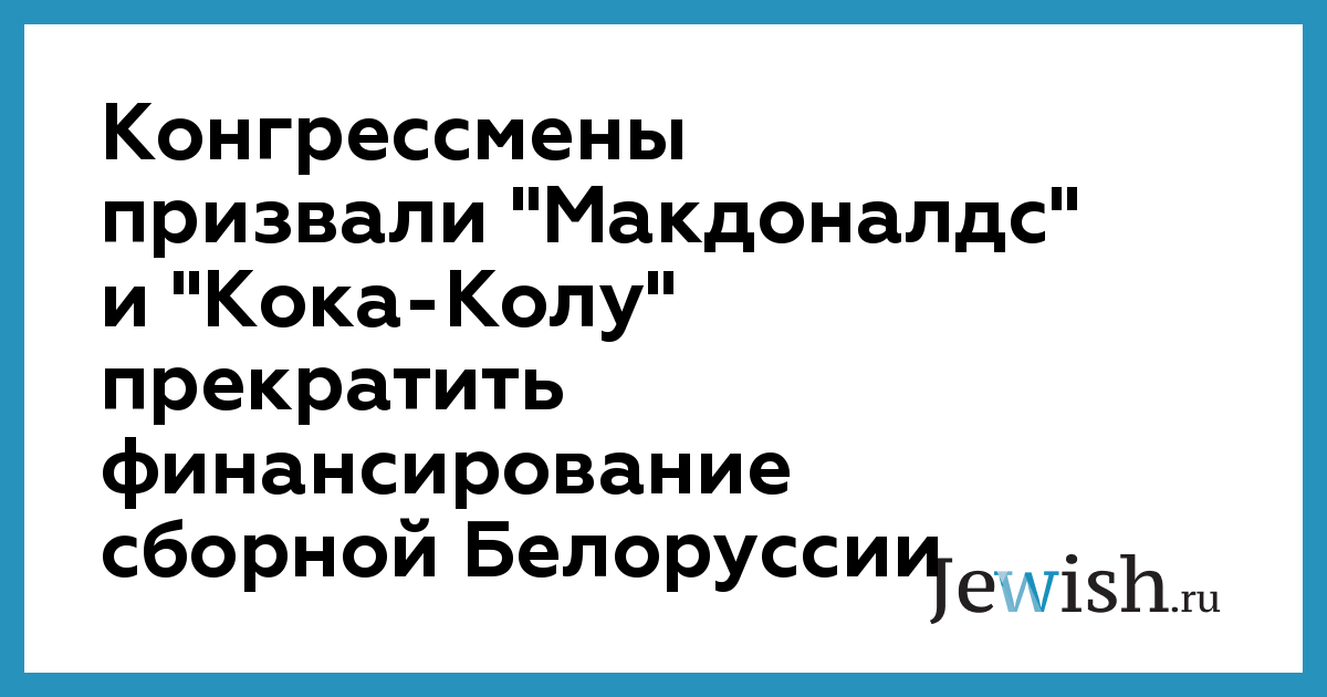 Конгрессмены призвали "Макдоналдс" и "Кока-Колу" прекратить финансирование сборной Белоруссии