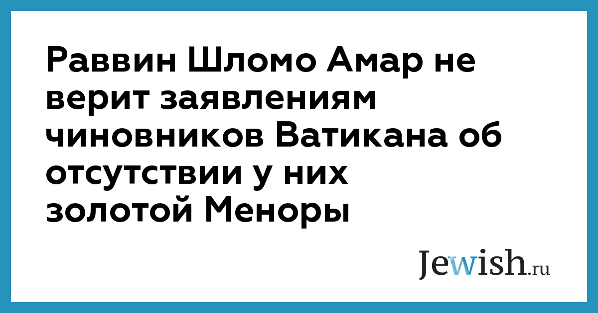 Раввин Шломо Амар не верит заявлениям чиновников Ватикана об отсутствии у них золотой Меноры