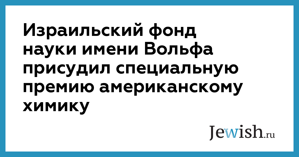 Израильский фонд науки имени Вольфа присудил специальную премию американскому химику