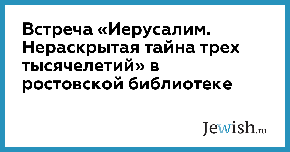 Встреча «Иерусалим. Нераскрытая тайна трех тысячелетий» в ростовской библиотеке