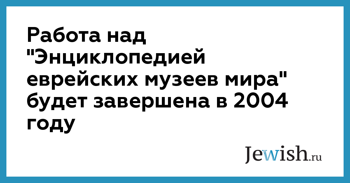 Работа над "Энциклопедией еврейских музеев мира" будет завершена в 2004 году