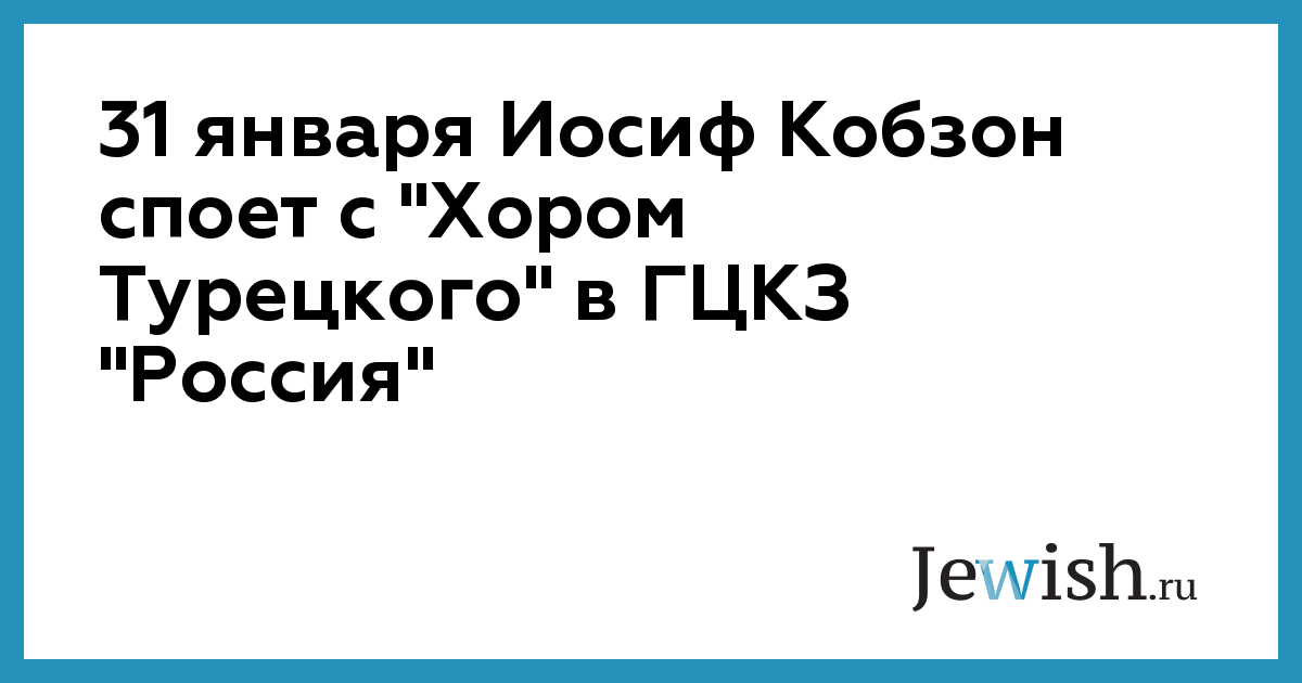 31 января Иосиф Кобзон споет с "Хором Турецкого" в ГЦКЗ "Россия"